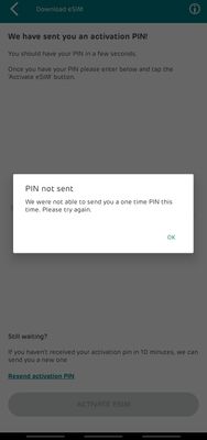 Hello all,  Through myEE app I chose the option to get the eSimEverything seems to be OK until the step for the activation, when I have to receive a one time pin that I get an error that can't be sentAny ideas? I can receive texts and messages with n...