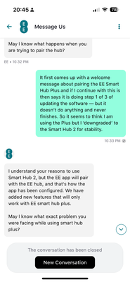 @Chris_B Had a OP posting with the BT Smarthub2 to the latest BT FW thar was released 1st April, and running connected via the EE app fine. Will try to find it and link. @Chris_B @WillKirk Take a look at the link see if it makes sense. Jim