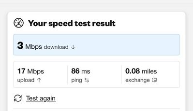 @BandedCrusaider Not sure, your tech log is showing 19.7 up and 3 down, but your speed test is showing 3 down and 17 up,!
