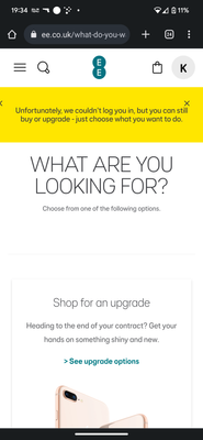 hi Christopher, there is no error messages, it's a website issue with pages keep looping and acting like it can't login when already logged in, the website does not function correctly especially when I am looking at upgrades. The app is just as bad. I have had a conversation with EE by phone in regards to website issue and you just say it's a known issue and being fixed but been going on for several months. It's also very hard to navigate to certain areas.