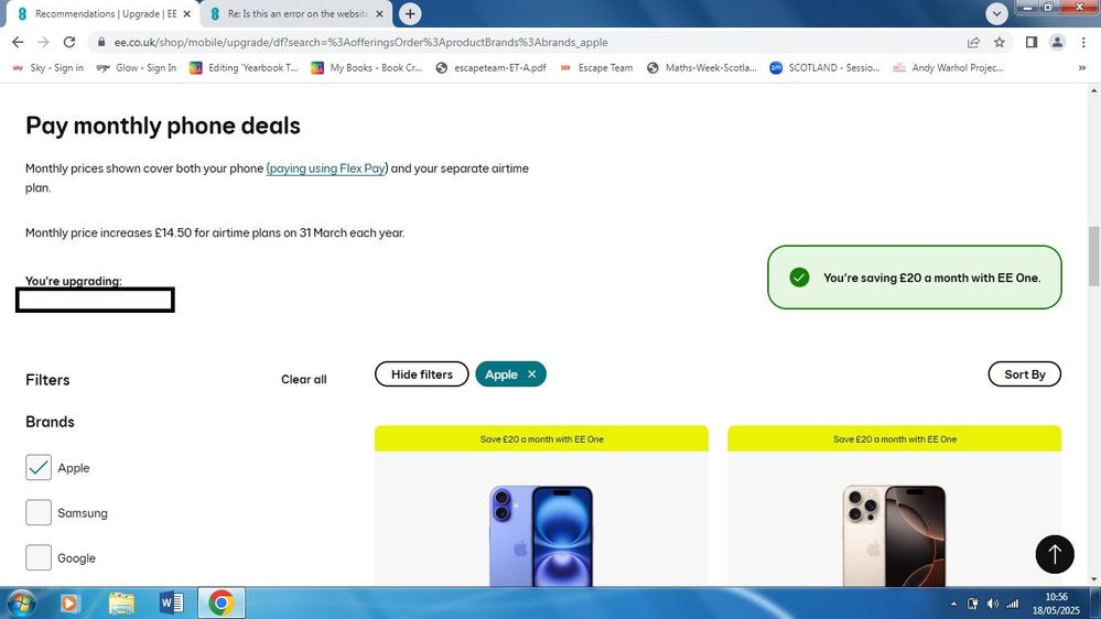 This message shows when you log into My EE account and then click on upgrade. This has now changed again and instead of stating £9.50 now states £14.50. I have attached a link and photo as evidence.