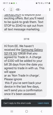 Can anyone give me the name and contact details of the company that deals with the trade ins? I agreed and then cancelled a trade in withinin the same phone call back in August but I keep getting the letters texts and emails saying to send my old phone or I will be charged £330.