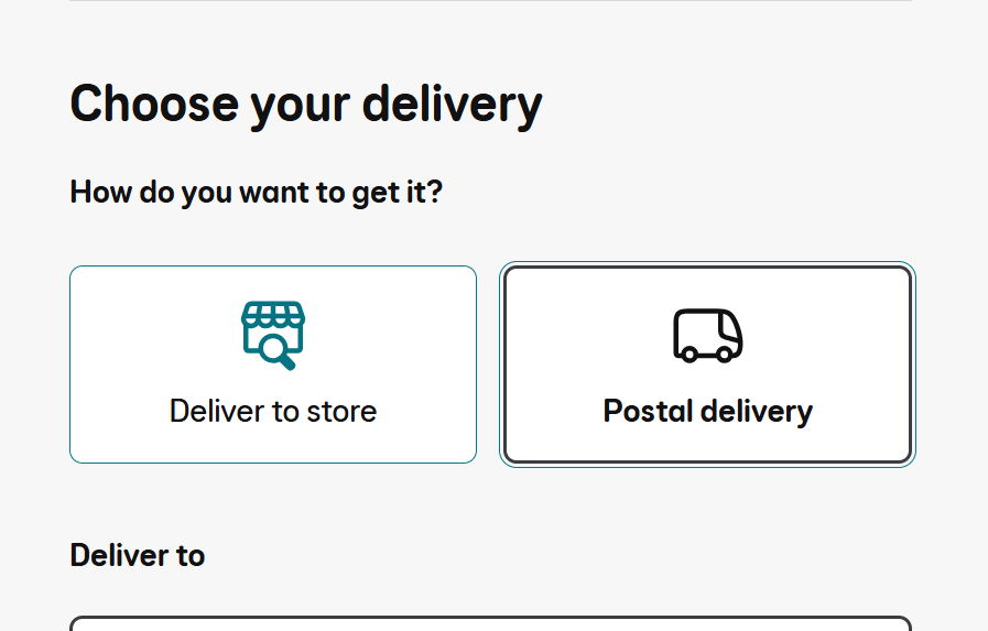 If you are buying a new phone or pay monthly contract device from us then delivery to store is still an option, it should be selectable on the final checkout page under where it has your personal details as per the screenshot.