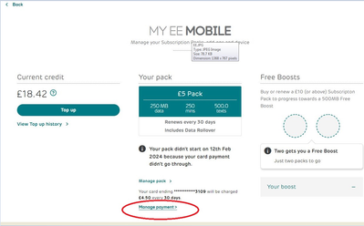 I've only just seen your rather smug 'game, set and match' reply to a previous post. The very first time I saw the notification stating 'card payment didn't go through' (12th Feb) was yesterday. Checking my bank account, payment was taken without issue, Furthermore, here's notification (as was the norm until yesterday) that the subscription was renewed without issue. Also below, notification of next renewal, ....which also went through without issue. Unsurprisingly, another example of EE blunder and misinformation.